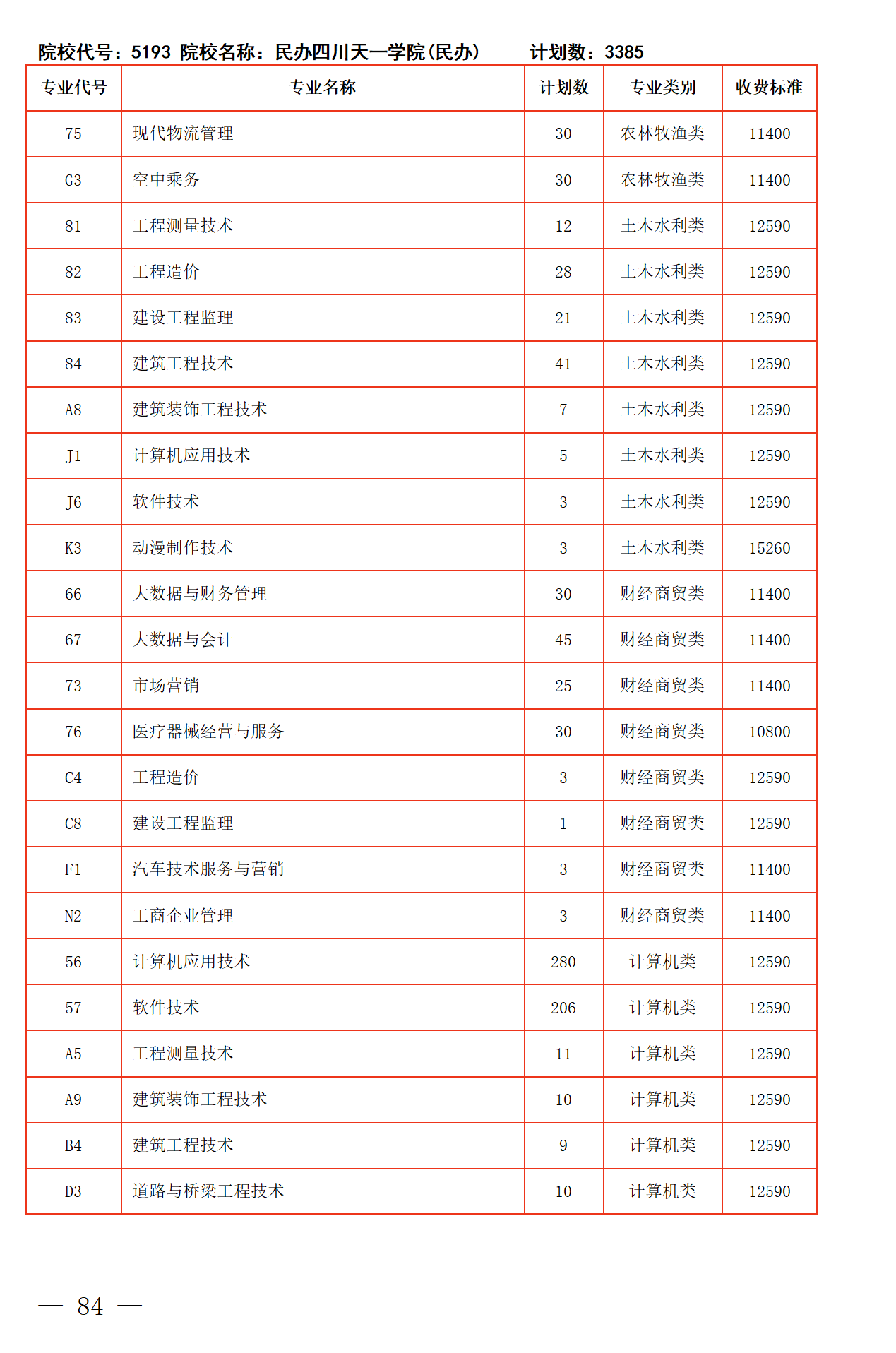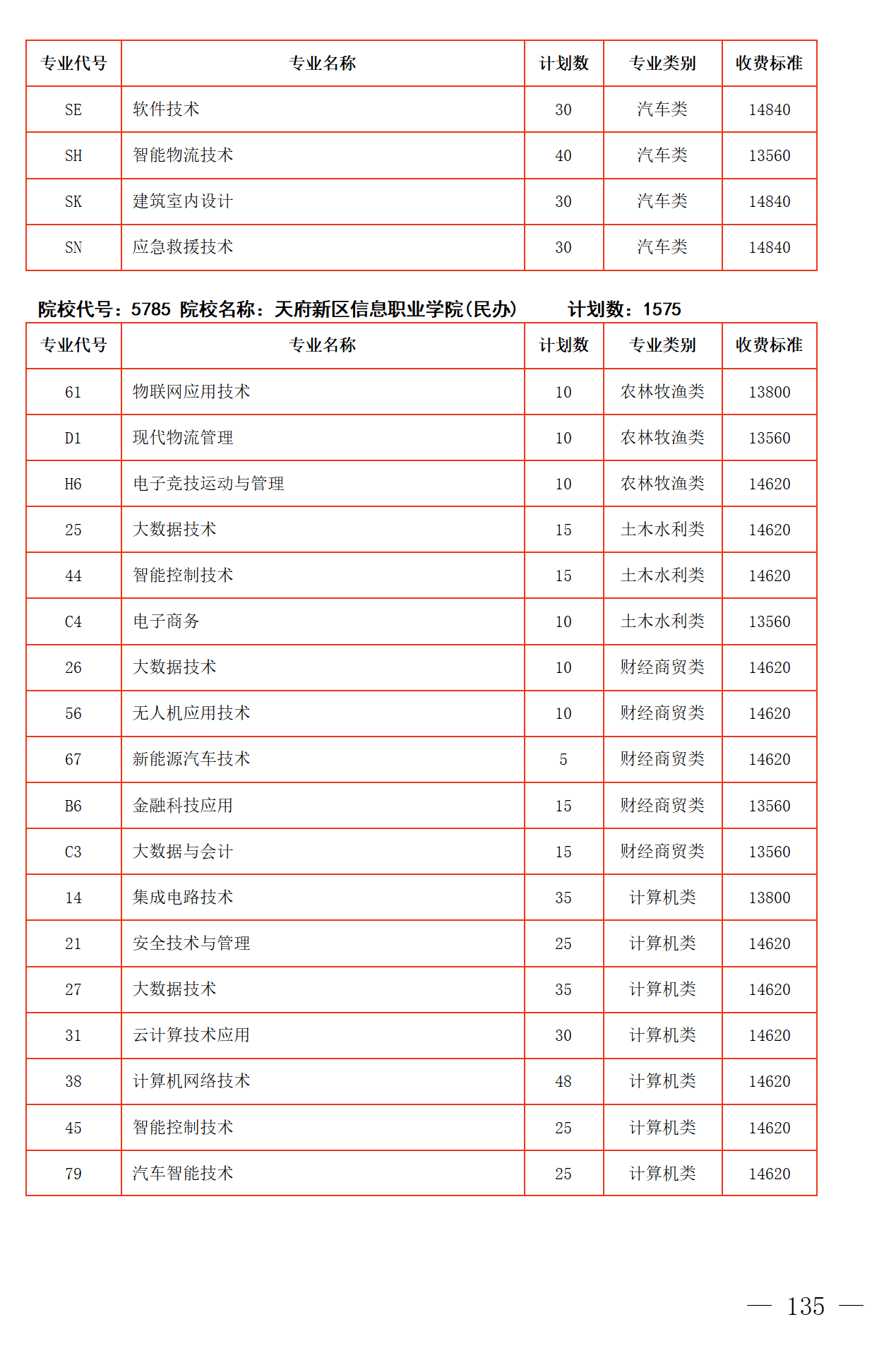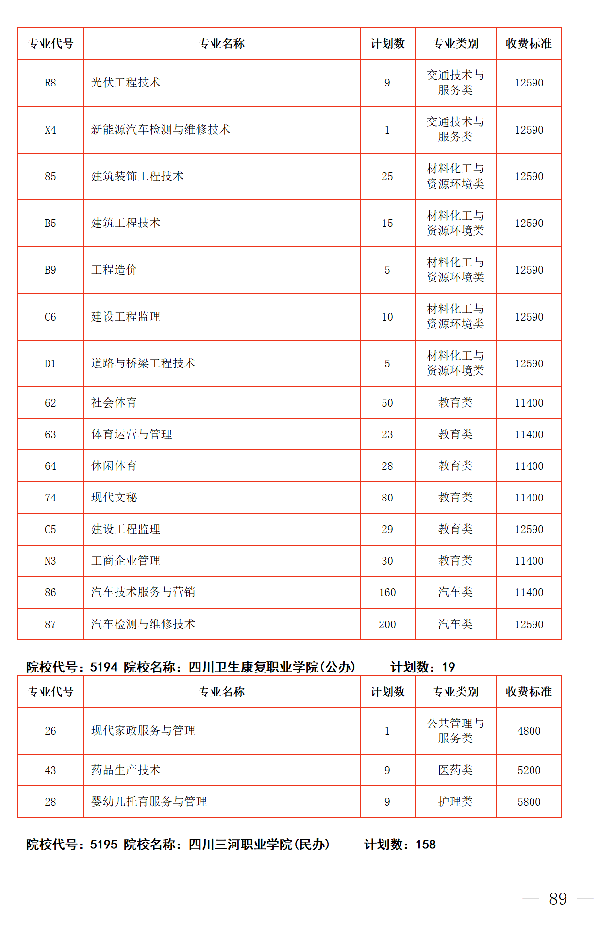 四川省2025年普通高校专升本招生专业及计划