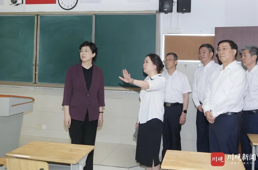 6月5日,省委副书记、省长施小琳来到成都市中和中学考点,检查智能安检运行和通道设置情况,走进考场和试卷保管室、广播信号室、视频监控室、考务办公室等重点场所察看考试准备情况。