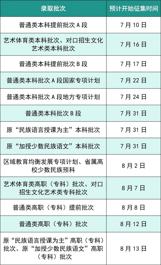 我省2025年普通高校招生录取预计征集志愿时间公布