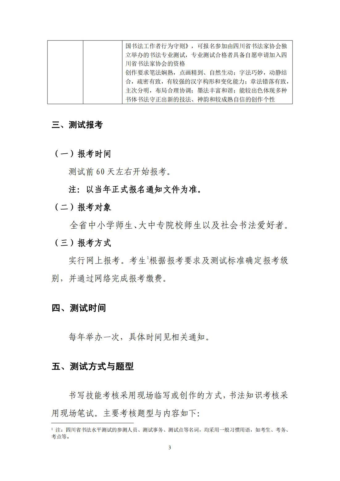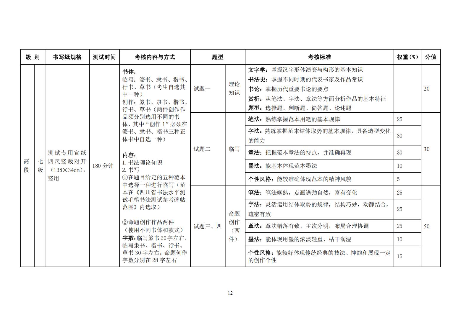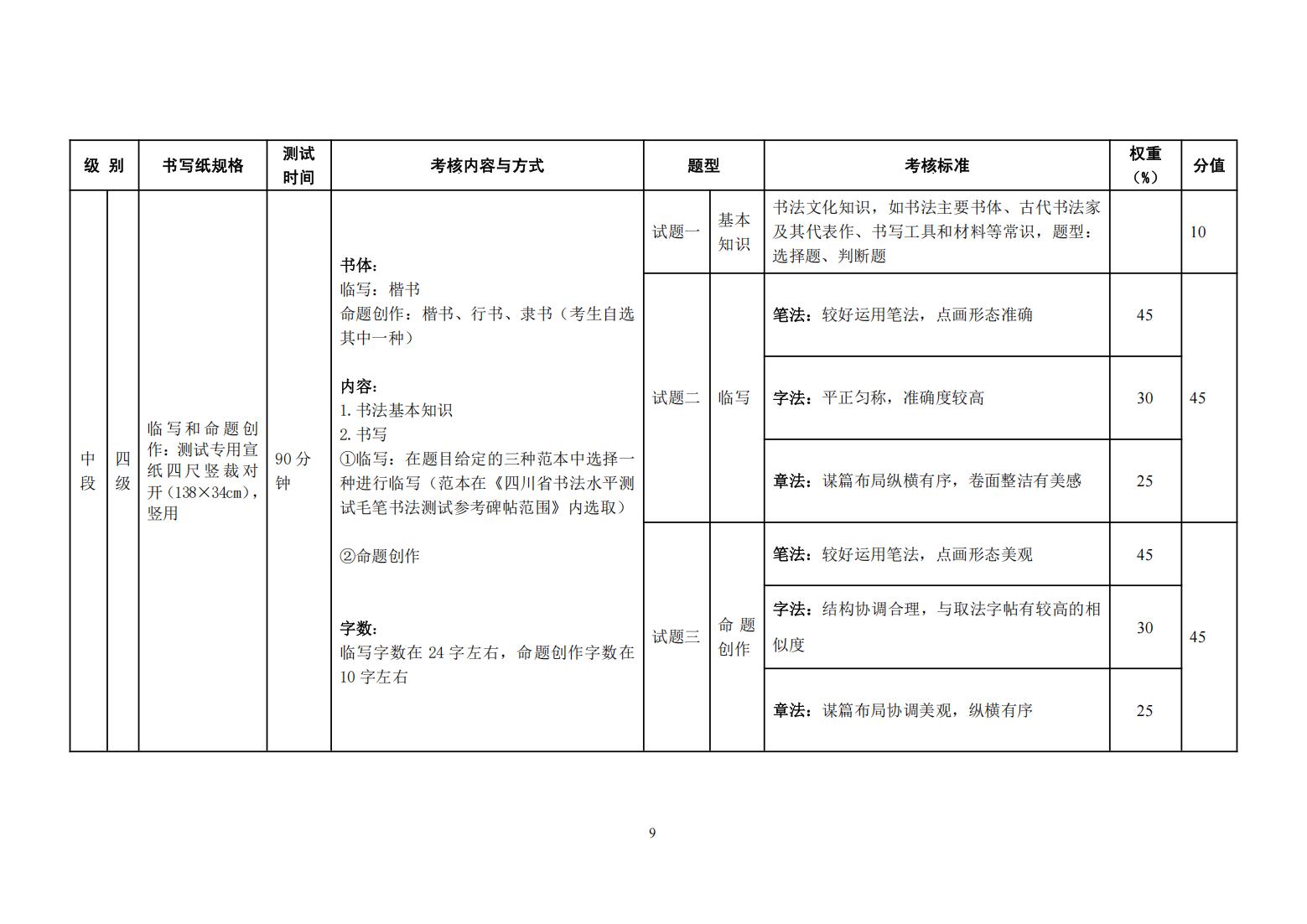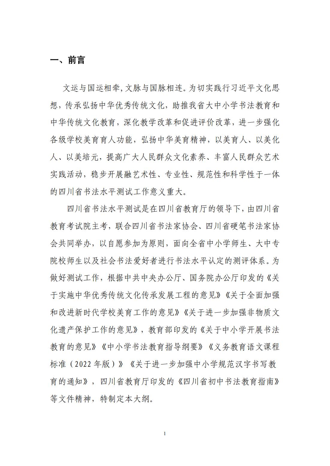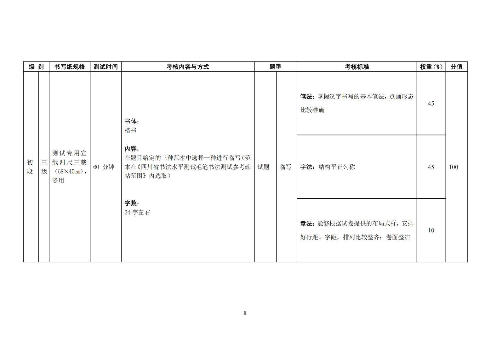 四川省书法水平测试毛笔书法测试大纲(2025年版)